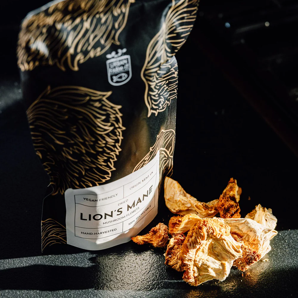 The volume of fresh to dried Lion’s Mane shrinks at a 10:1 ratio. This means 50g of dried mushrooms equals 500g of fresh. This makes it a handy and long-lasting pantry item.